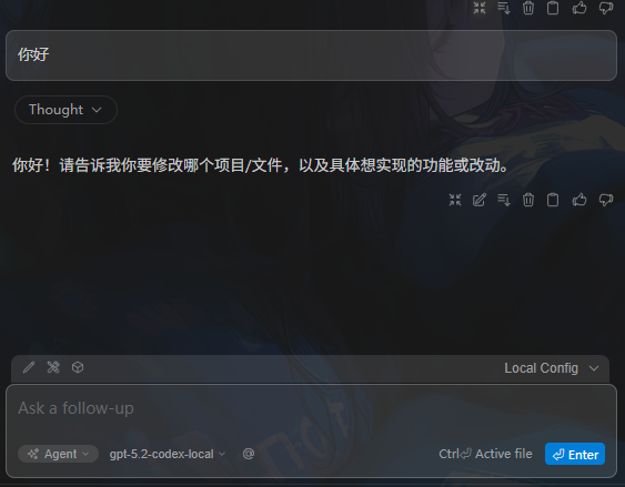 - name: 自定义别名 # 随意填写,用于在 chat/edit 中引用,如 gpt-5.2-codex-local